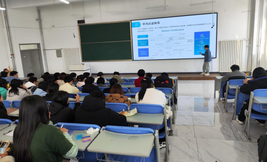 华为ICT学院在晨曦楼202教室举行HCIA-DATACOM认证集训班开课宣讲会。华为ICT学院相关教师、集训班学员共115人参加。