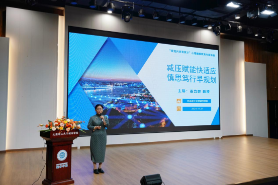 谷力群教授以“减压赋能快适应,慎思笃行早规划”为主题,引用马拉松选手林义杰的励志事迹作为开篇,启发同学们对大学生活进行思考。她以生动的个案,从就业、考研、考公、创业四个发展目标进行了详细讲授。同时结合大一学生的心理特点,介绍了相关心理学方法,助力同学们找好定位,减压赋能,在行动中寻找人生方向,实现人生梦想。