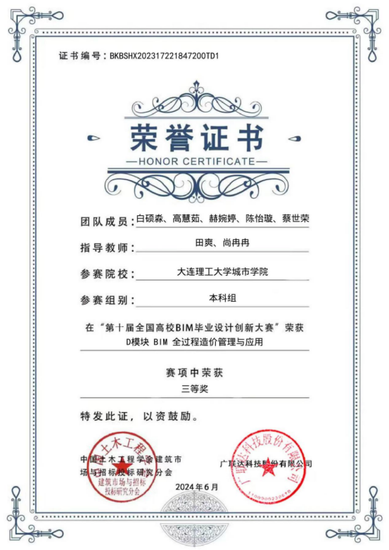 学子在2024年第十届全国高校BIM毕业设计大赛中荣获佳绩