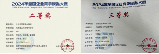 共获得六个国家级奖项。其中二等奖2项、三等奖3项,涵盖企业运营赛道和人力资源决策赛道。