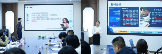 在说课组分赛场,7位老师以饱满的精神完成了精彩的竞赛说课,他们运用前沿的教学理念和教学模式,同时AI赋能教学,体现了因材施教、创新性的教学特色。