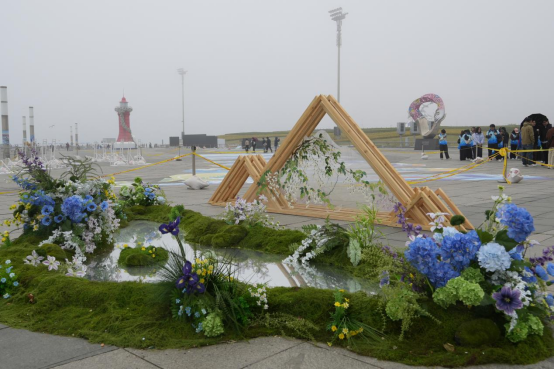 建筑工程学院设计团队的“槐韵海生”主题景观成为焦点,游人争相打卡,为赏槐会增添了一道亮丽风景线。