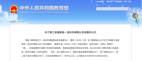 本网讯 日前,教育部发布了《关于第三批国家级一流本科课程认定结果的公示》,69堂