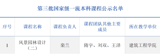 建筑工程学院教师栾兰的《风景园林设计(二)》课程入选国家级一流本科课程(社会实践课程)。