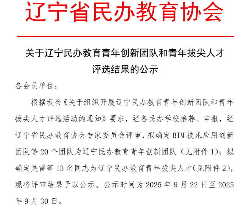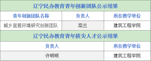 栾兰老师领衔的“城乡宜居环境研究创新团队”获评“辽宁民办教育青年创新团队”。许明明老师当选“辽宁民办教育青年拔尖人才”,实现人才与团队建设双突破。