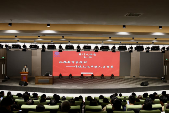 本网讯 10月31日下午,黉门大讲堂系列(第六期)讲座在学院西区图书馆礼堂举行,辽宁师范大学博士生导师、中共中央宣传部马克思主义理论与教材建设工程专家林建华教授应邀作“弘扬教育家精神——传统文化中的人生智慧”的主题讲座。