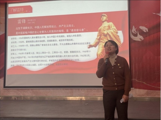 在活动中,电子与自动化学院党总支书记刘丽娟老师以《永恒的雷锋永恒的精神》为题向大家讲解了雷锋同志的光辉事迹、雷锋精神内涵及时代意义等内容,并向小树苗公益课堂赠送了《雷锋日记》、《闪闪红星》等书籍和地球仪等文具。