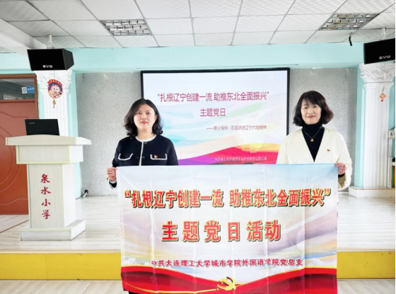 本网讯 为深入贯彻落实习近平总书记在新时代推动东北全面振兴座谈会上的重要讲话精神,奋力谱写中国式现代化辽宁新篇章,外国语学院党总支与泉水小学联合开展“扎根辽宁创建一流,助推东北全面振兴”主题党日活动。此次活动以双语讲述辽宁“六地”精神为核心,通过跨语种交流的方式,让孩子们更加深入地了解家乡的历史文化,传承革命精神,赓续红色基因,激励同学们为家乡发展贡献力量。