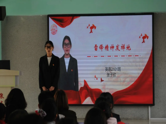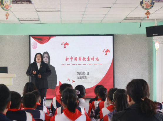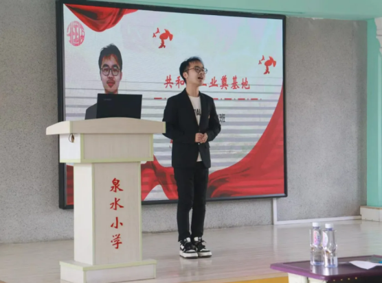 外国语学院的六名学生代表分别登上讲台,以现场讲述与播放视频相结合的方式,用中英双语向在场的泉水小学师生们介绍了辽宁的红色“六地”文化,并将辽宁“六地”红色文化深深融入小学思政讲堂上,使在场的师生深刻感受到“六地”精神的独特魅力和深刻内涵。