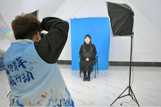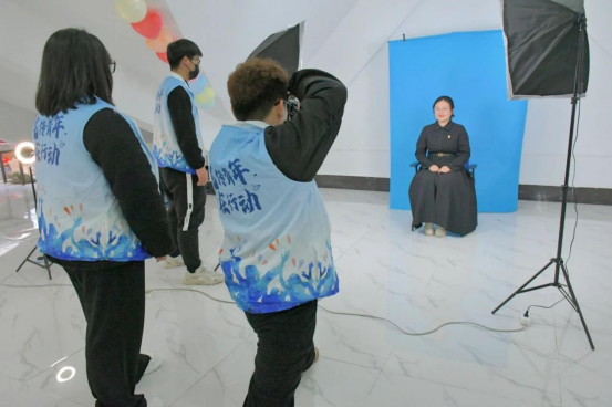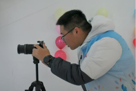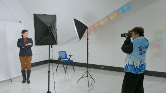 本次活动提供补光灯及红、白、蓝三色背景,以满足师生在证件照上的需求。团队成员们积极调动师生情绪,帮助师生摆出适合自己的造型,让他们以舒适放松的状态拍摄出高质量的证件照。