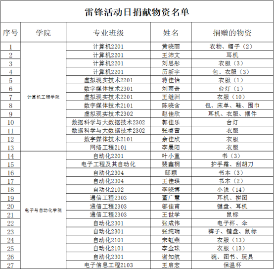 活动历时一个月。“一站式”学生社区党总支在校园内设立物资回收点,方便师生捐赠手中闲置的衣物、书籍等物品。同时,还通过线上线下相结合的方式,广泛宣传雷锋精神,倡导大家积极参与公益活动,为贫困儿童奉献一份爱心。捐赠同学在爱心便利贴上写下了自己对雷锋精神的感悟,此次活动还为各位“小雷锋”准备了小礼品作为精神嘉奖。
