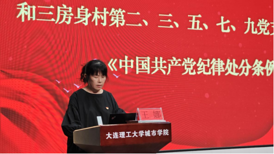 本网讯 4月26日,图书馆教工党支部和三房身村第二、三、五、七、九党支部于图书馆报告厅共同学习《中国共产党纪律处分条例》。(下称《条例》)图书馆教工党支部书记徐其怀领学,三房身村党总支副书记王娜作总结发言。