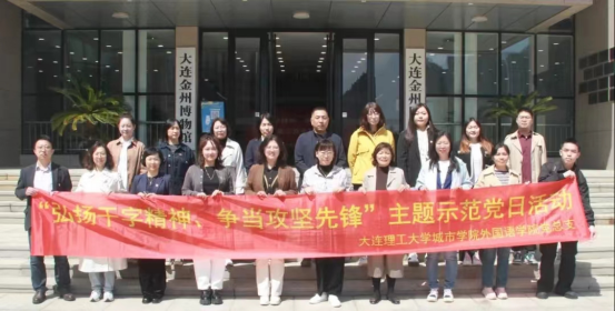 本网讯 4月24日,外国语学院党总支在金州博物馆开展“弘扬干字精神,争当攻坚先锋”主题示范党日活动。外国语学院党政领导、党总支教工党员、部分教师及学生党员参加了活动。