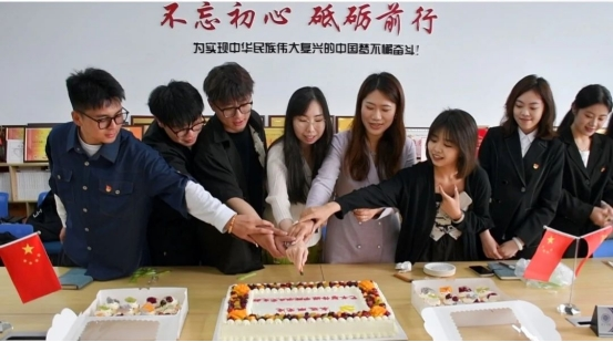 支部其他党员也纷纷为毕业生党员们送上真挚的祝福,老师们为毕业生党员送上礼物,大家共同切下写着“永远跟党走”的蛋糕,通过切蛋糕仪式,共同庆祝这一特别的时刻,希望党员同志在殷殷寄语中牢记初心使命,在甘甜蛋糕中品味关心温暖。