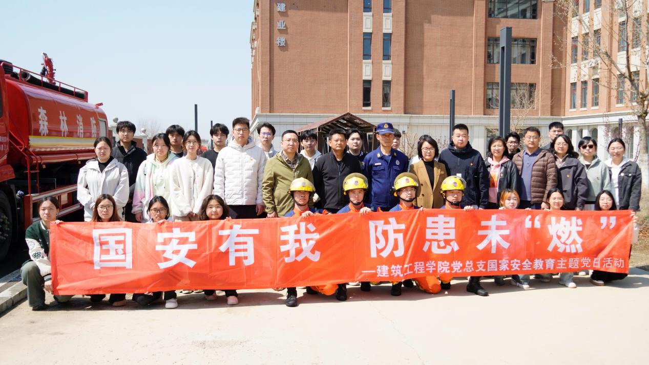 本网讯 4月10日,建筑工程学院党总支邀请金普新区林业事务中心森林消防队近20名消防战士,与建筑工程学院党总支共同开展了“国安有我 防患未‘燃’”国家安全教育日主题党日活动。