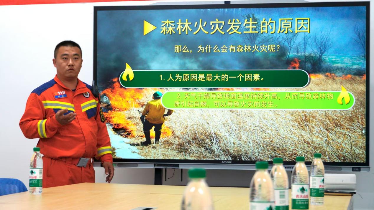 森林消防队班长李通海在建业楼413党员活动室为师生党员开展林业防火技能培训。通过丰富的案例分析和现场演示,师生们对林业防火有了更加深入的了解。