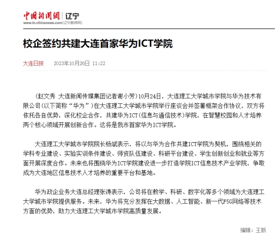 中国新闻网|辽宁:校企签约共建大连首家华为ICT学院