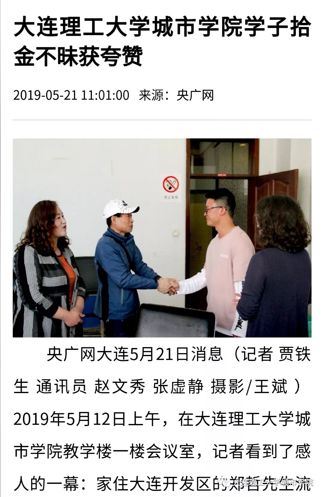 城院速递|央广网等多家媒体关注69堂 学子拾金不昧的善举