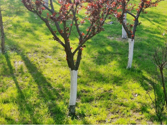 素面粉黛浓,玉盏擎碧空。初开的樱花、桃花、梨花、杏花晶莹剔透地点缀在嫩绿丛中。5号、8号宿舍前,紫玉兰开得热烈、妖娆,绚烂的色彩为静谧的校园平添了一份华贵之气。而旁边的那几丛白玉兰,远远望去,像极了还未消融的冰雪,挂满了枝头,宛如穿着一身白衣的少女,在春风中翩然起舞。