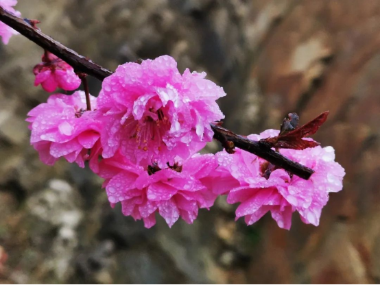 花雨如酥一庭春。春雨滴落在花瓣上,晶莹剔透,撩拨人心。一夜春雨过,满庭杏花香。