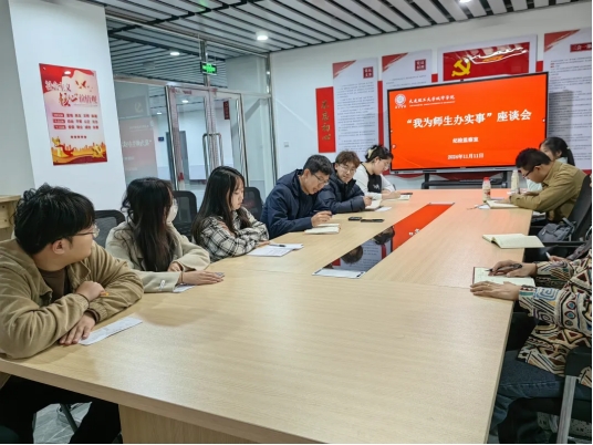 每学期坚持开展“我为学生办实事”座谈活动,广泛听取学生的意见建议,通过搭建师生交流平台,用心为学生办实事,不断增强学生对学院的认同感、归属感和幸福感,助力学生全面发展。