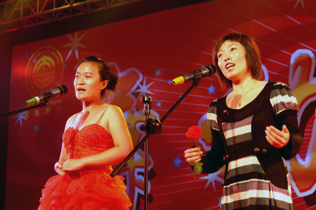 “峰岚杯”文艺大赛二等奖的杨楚仪同学与其指导教师胡淼共同演绎歌曲《西班牙女郎》,其美妙的和声、悠扬的韵律征服了在座的所有观众,将晚会的气氛推向了高潮。