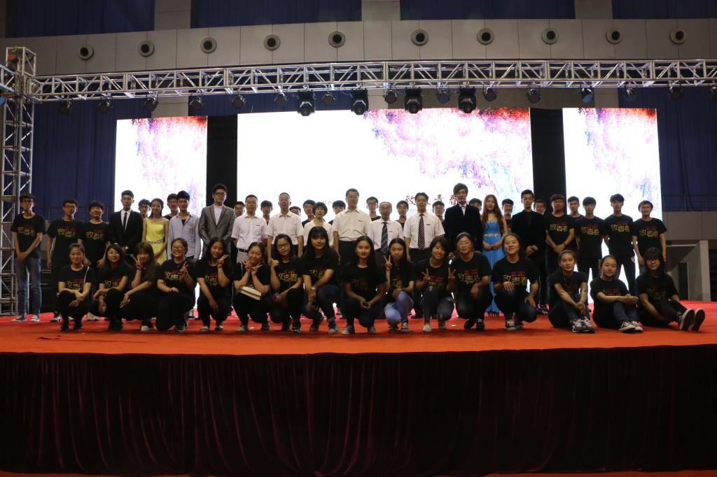 晚会结束后,学院领导与全体演员一一握手并合影留念。