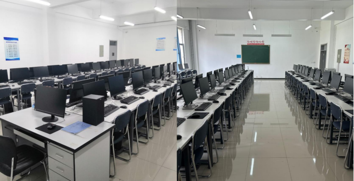 教室配有IDV云桌面一体机、品牌台式机两种高配置机型,配置千兆局域网环境,接入教育网。不仅能满足学院日常课程教学的需要,还为全院学生的课余学习、上网提供了良好条件和优质服务。